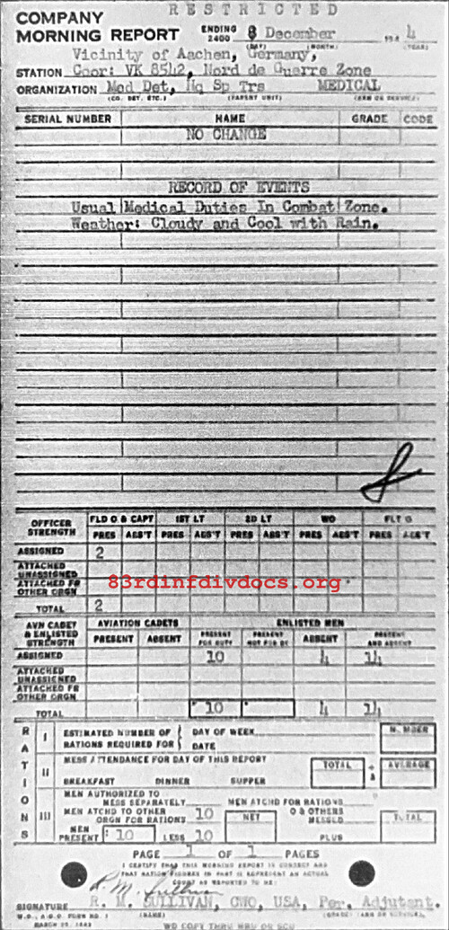 Morning report SPTRPSMEDDET/83 for December 8, 1944