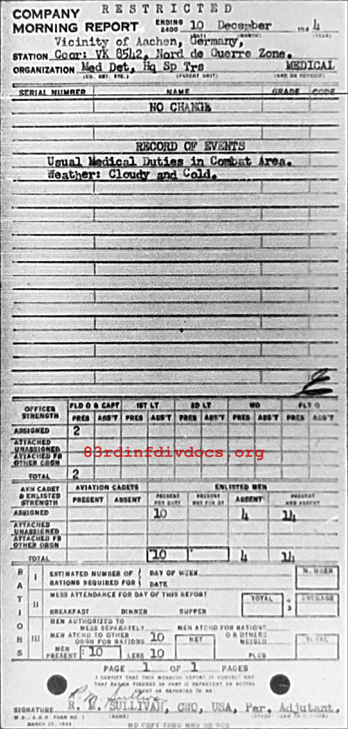 Morning report SPTRPSMEDDET/83 for December 10, 1944