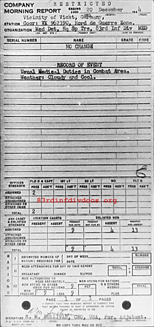 Morning report SPTRPSMEDDET/83 for December 20, 1944