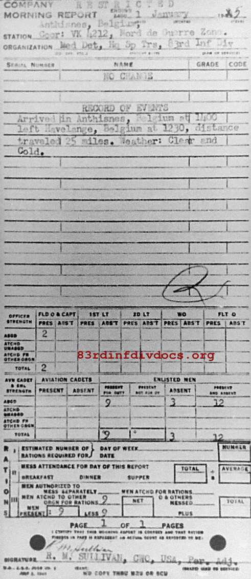 Morning report SPTRPSMEDDET/83 for January 1, 1945