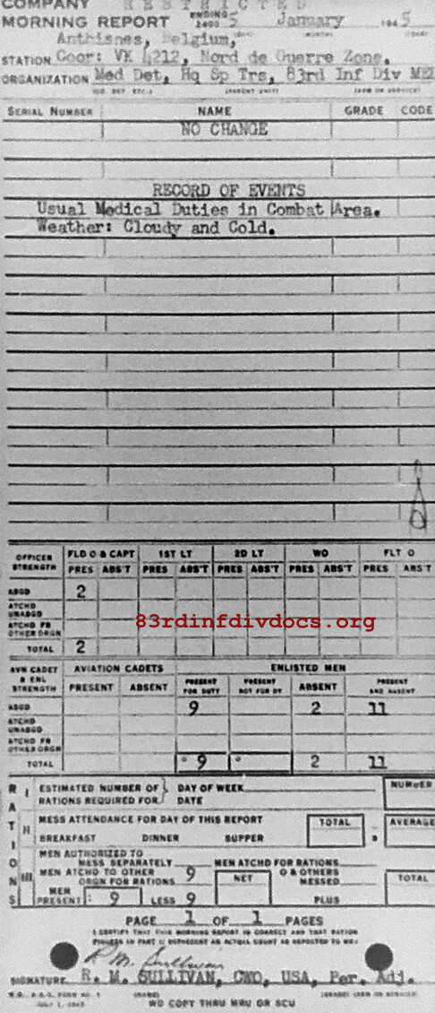 Morning report SPTRPSMEDDET/83 for January 5, 1945