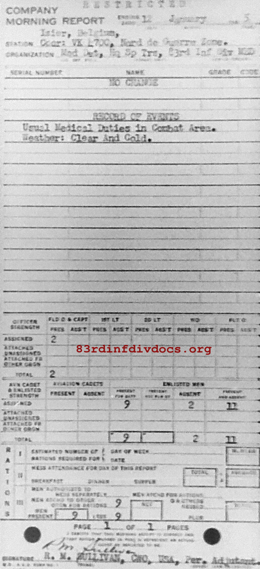Morning report SPTRPSMEDDET/83 for January 12, 1945