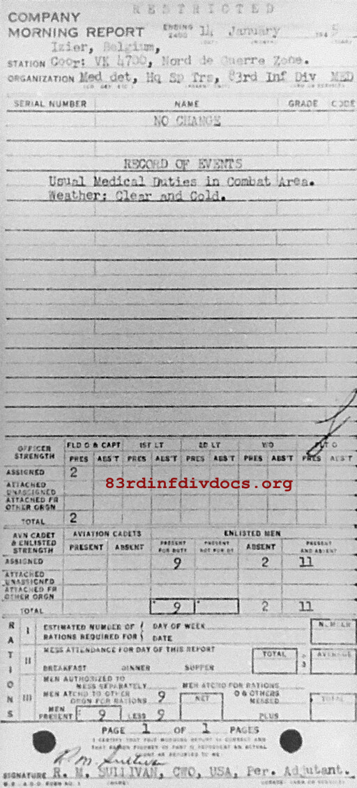 Morning report SPTRPSMEDDET/83 for January 14, 1945