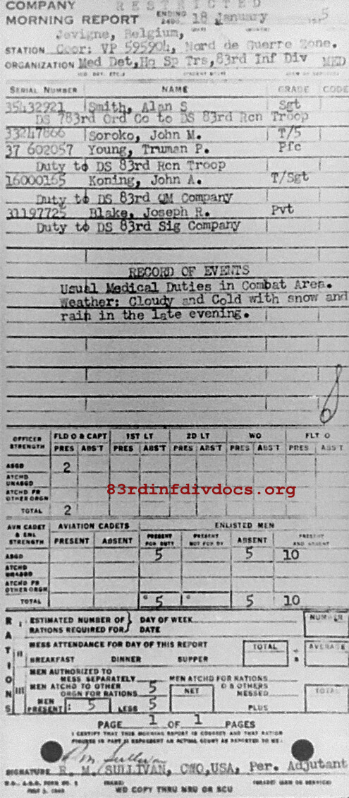Morning report SPTRPSMEDDET/83 for January 18, 1945