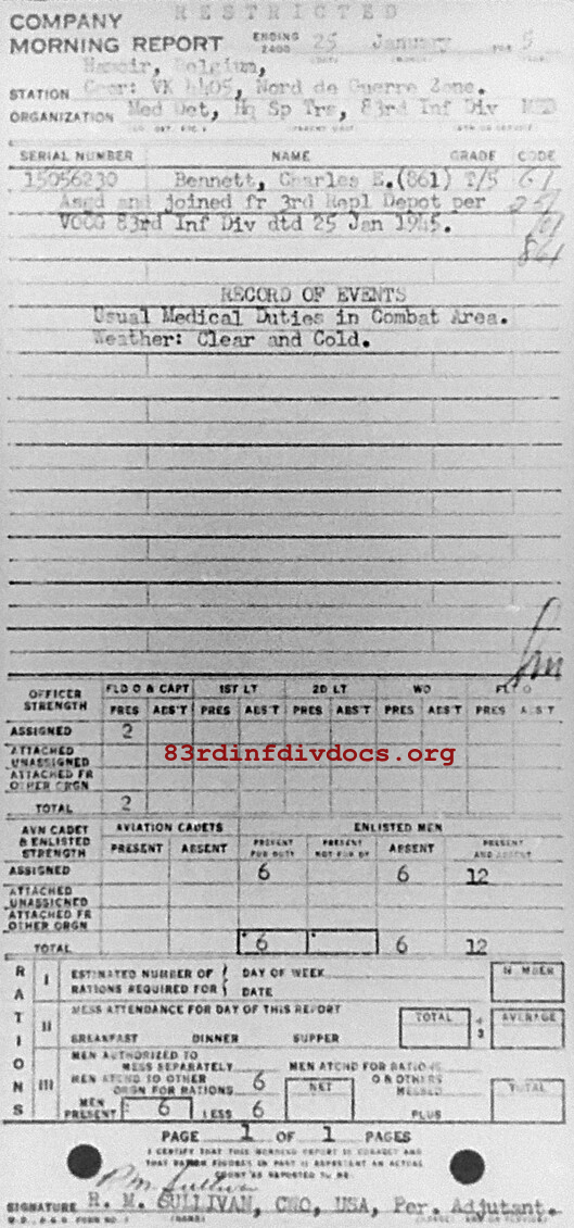 Morning report SPTRPSMEDDET/83 for January 25, 1945