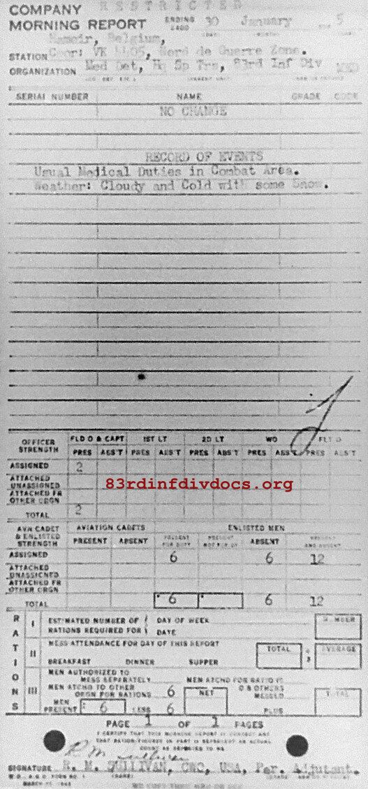 Morning report SPTRPSMEDDET/83 for January 30, 1945