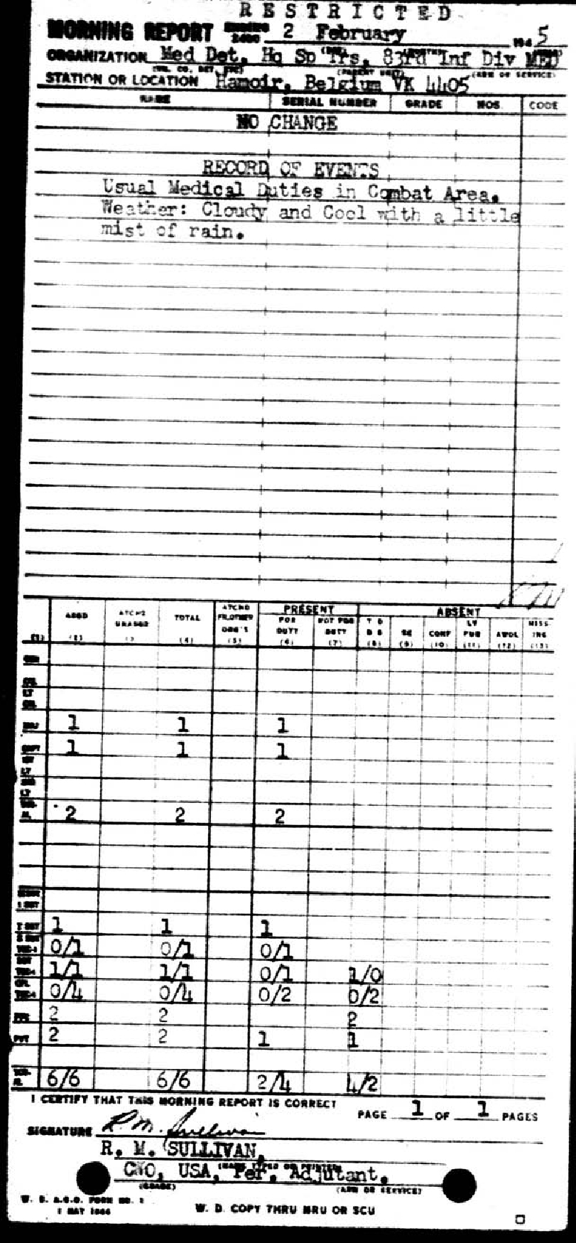 Morning report SPTRPSMEDDET/83 for February 2, 1945