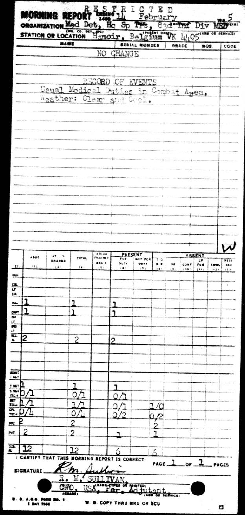 Morning report SPTRPSMEDDET/83 for February 14, 1945