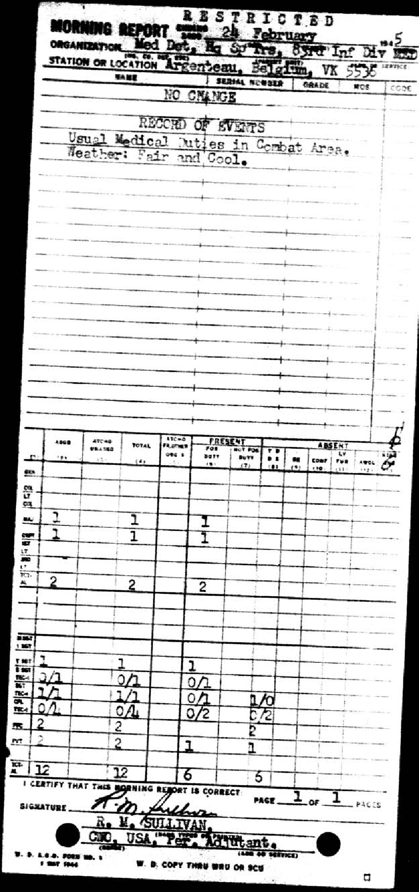 Morning report SPTRPSMEDDET/83 for February 24, 1945