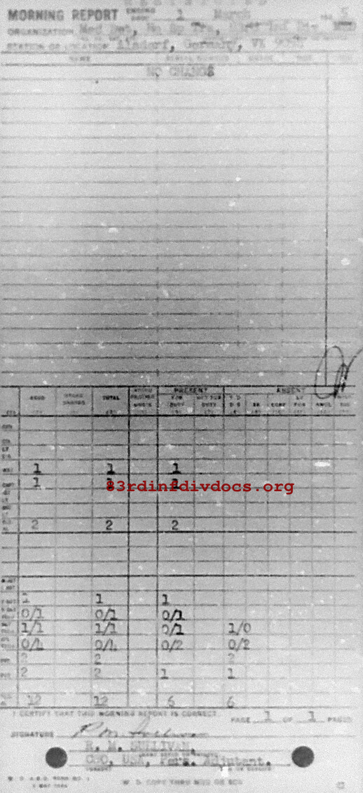 Morning report SPTRPSMEDDET/83 for March 1, 1945