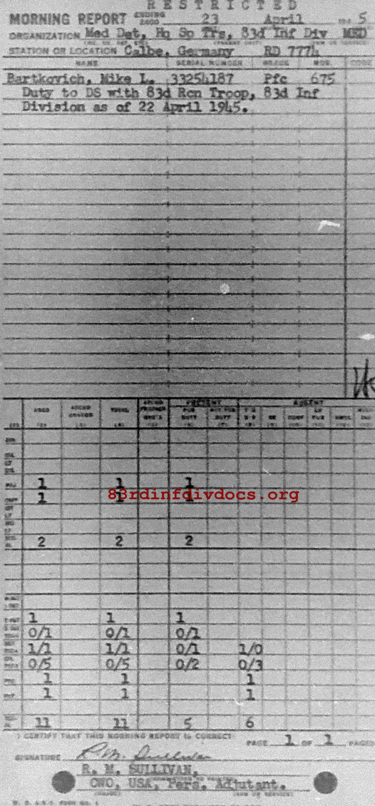 Morning report SPTRPSMEDDET/83 for April 23, 1945