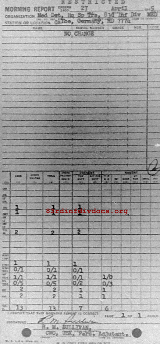 Morning report SPTRPSMEDDET/83 for April 27, 1945