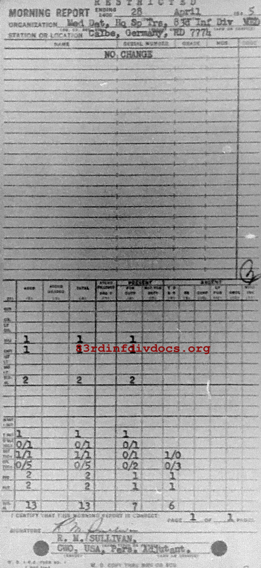 Morning report SPTRPSMEDDET/83 for April 28, 1945
