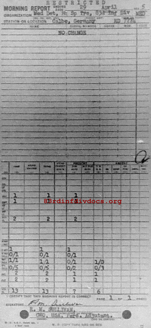 Morning report SPTRPSMEDDET/83 for April 29, 1945