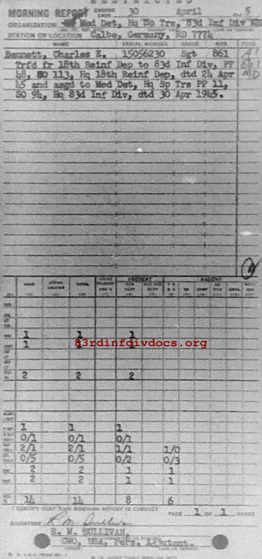 Morning report SPTRPSMEDDET/83 for April 30, 1945
