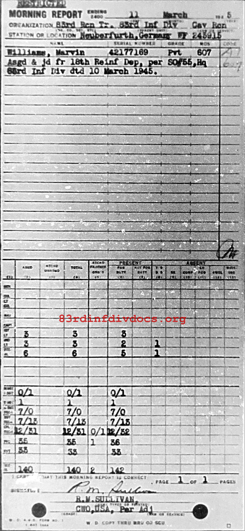 Morning report 83RCNTRP for March 11, 1945