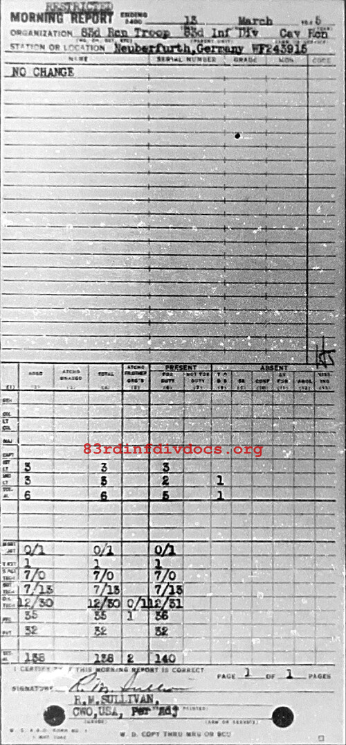 Morning report 83RCNTRP for March 13, 1945