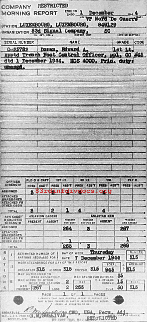 Morning report 83SIGCO for December 1, 1944