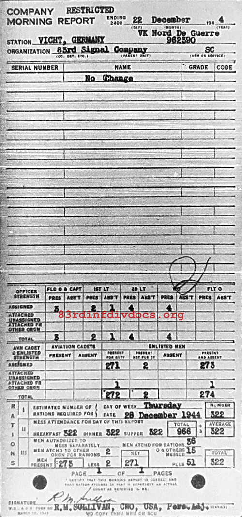 Morning report 83SIGCO for December 22, 1944