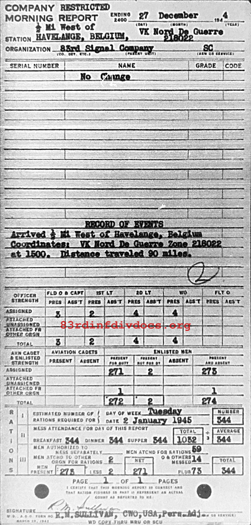 Arrived 1/2 mi west of Havelange, Belgium at 1500. Distance traveled 90 miles.