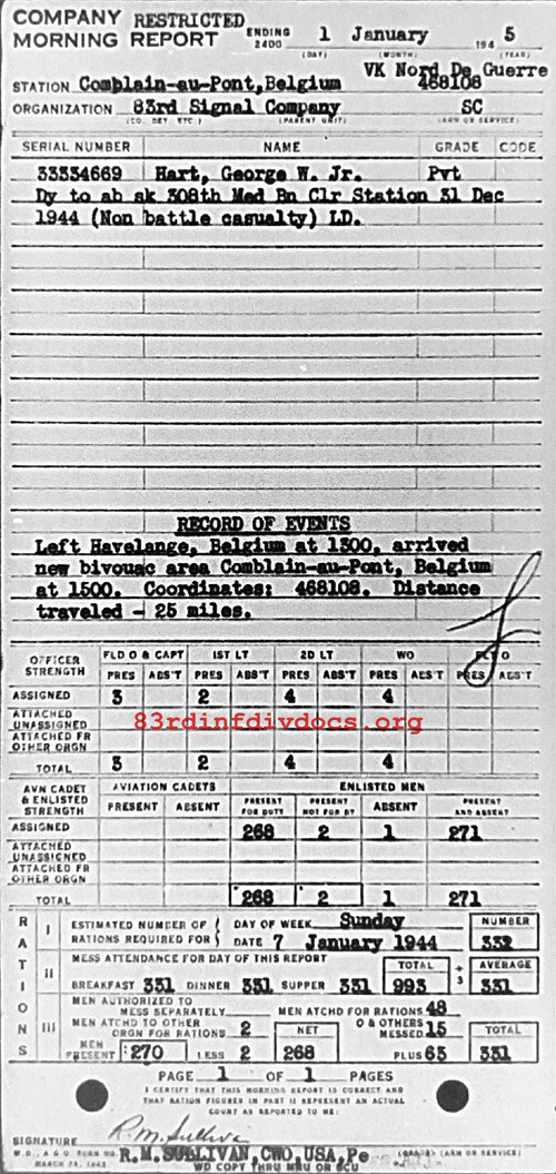 Morning report 83SIGCO for January 1, 1945