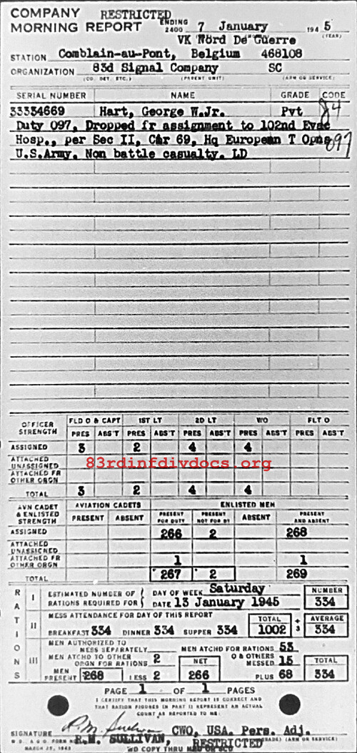 Morning report 83SIGCO for January 7, 1945