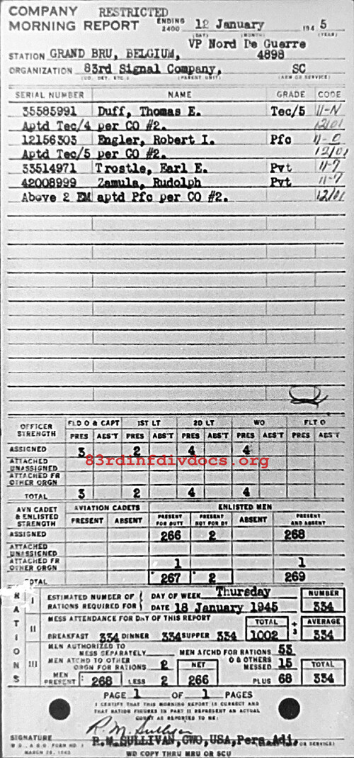 Morning report 83SIGCO for January 12, 1945