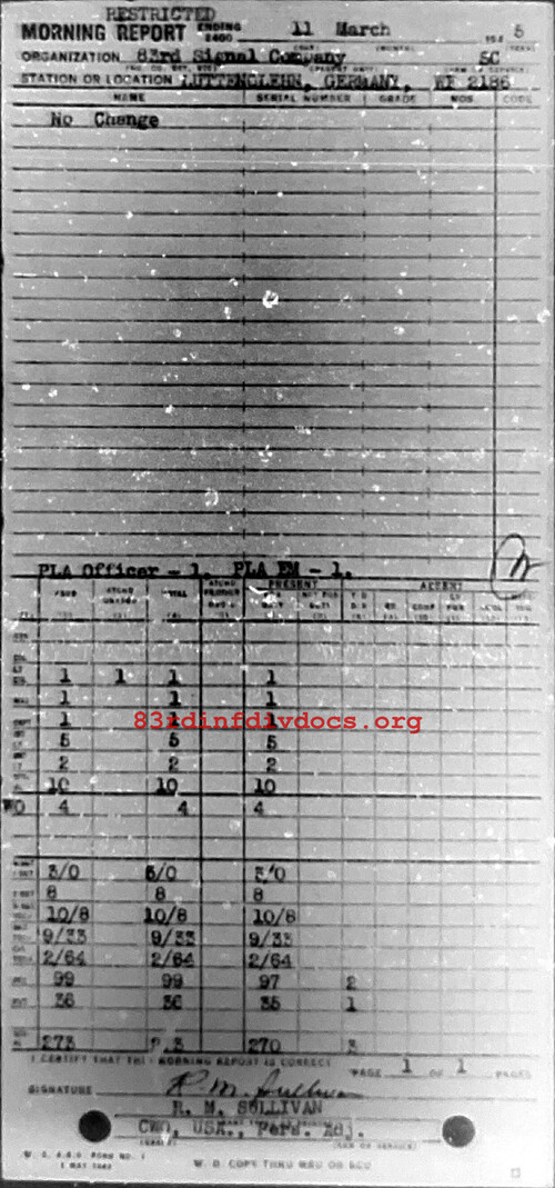 Morning report 83SIGCO for March 11, 1945