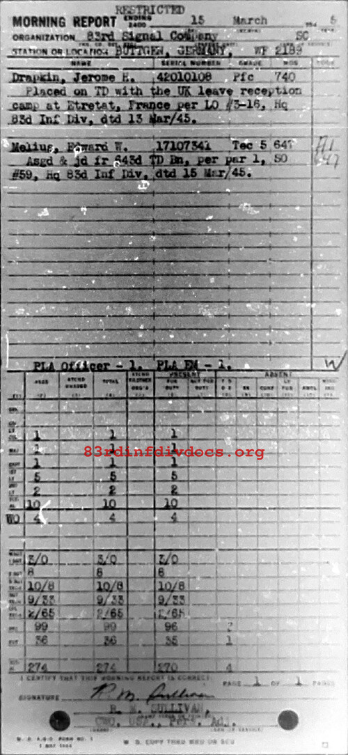 Morning report 83SIGCO for March 15, 1945