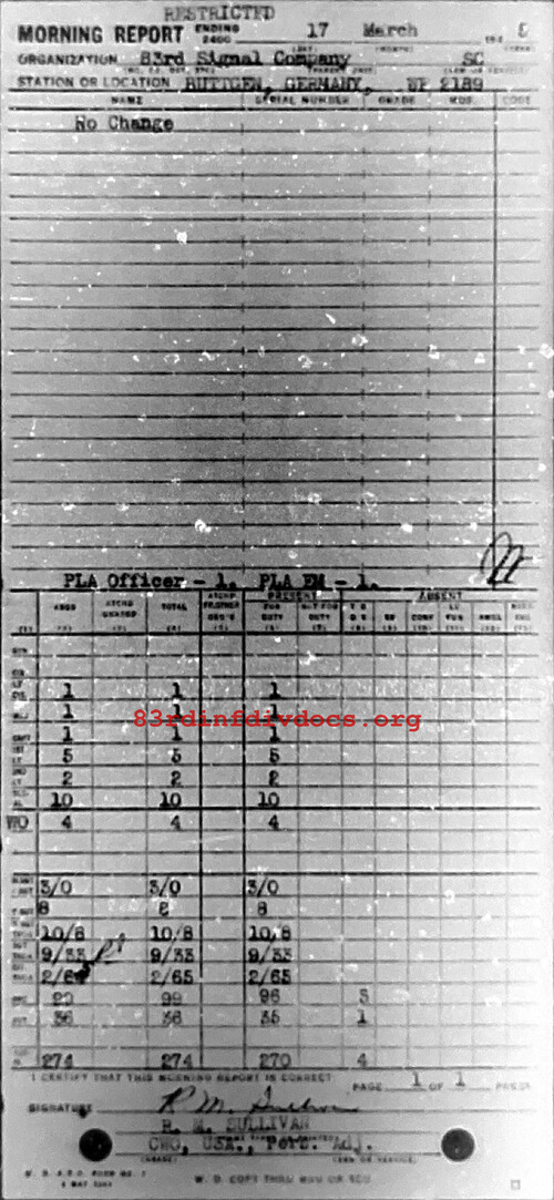 Morning report 83SIGCO for March 17, 1945