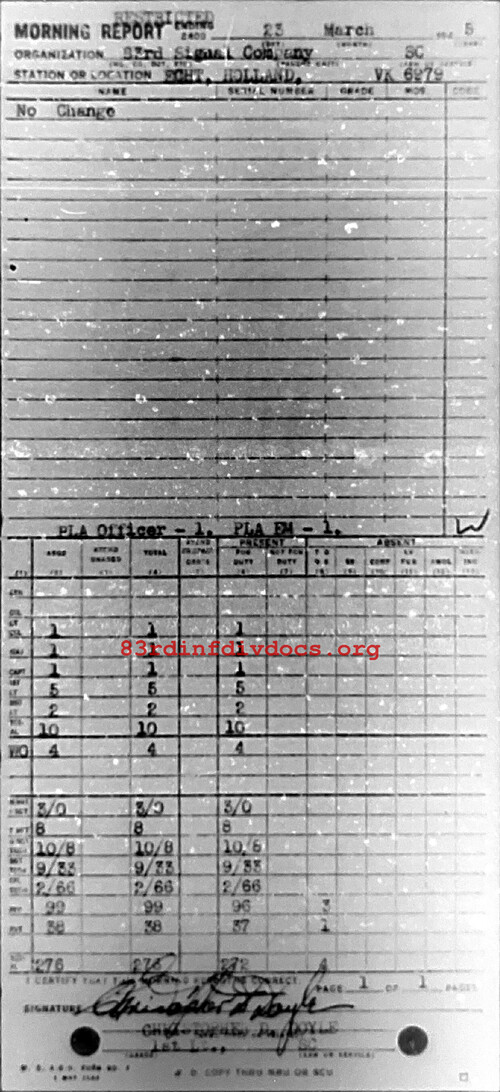 Morning report 83SIGCO for March 23, 1945