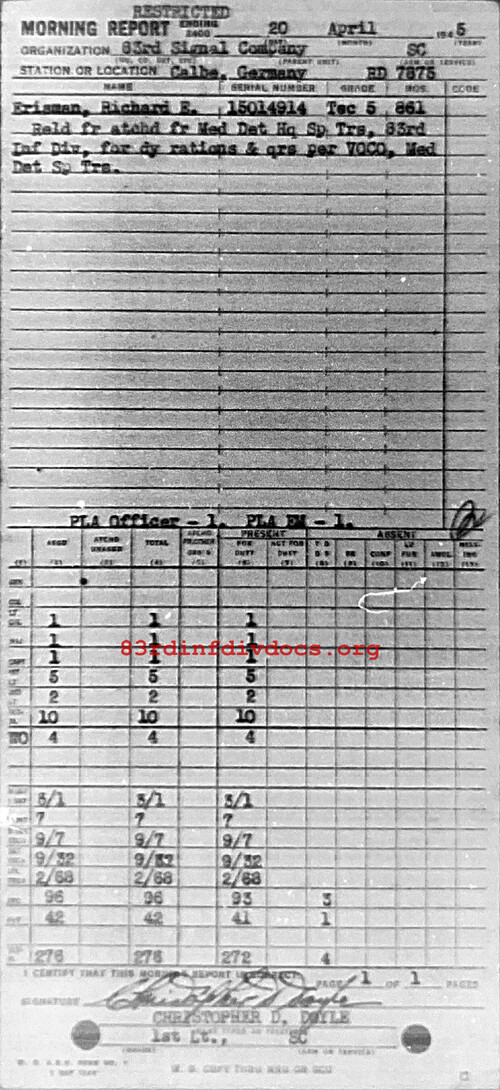 Morning report 83SIGCO for April 20, 1945