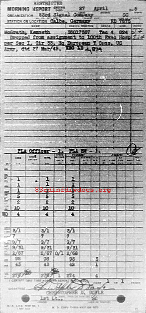Morning report 83SIGCO for April 27, 1945