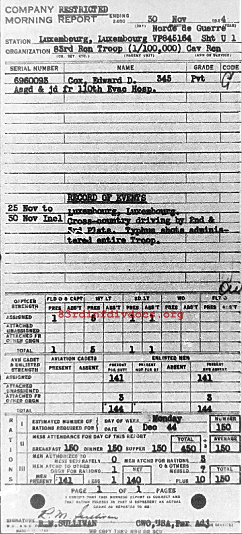 Morning report 83RCNTRP for November 30, 1944