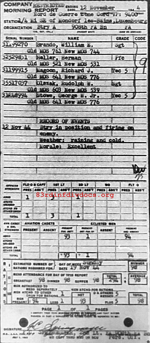 Btry in position and firing on enemy. Weather: Raining and cold. Morale: Excellent.