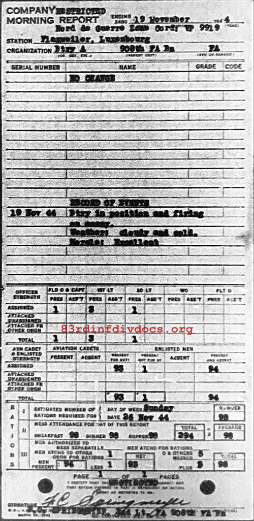Btry in position and firing on enemy. Weather: Cloudy and cold. Morale: Excellent.