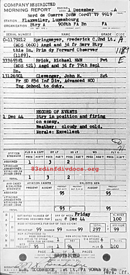 Btry in position and firing on enemy. Weather: cloudy and cold. Morale: Excellent.