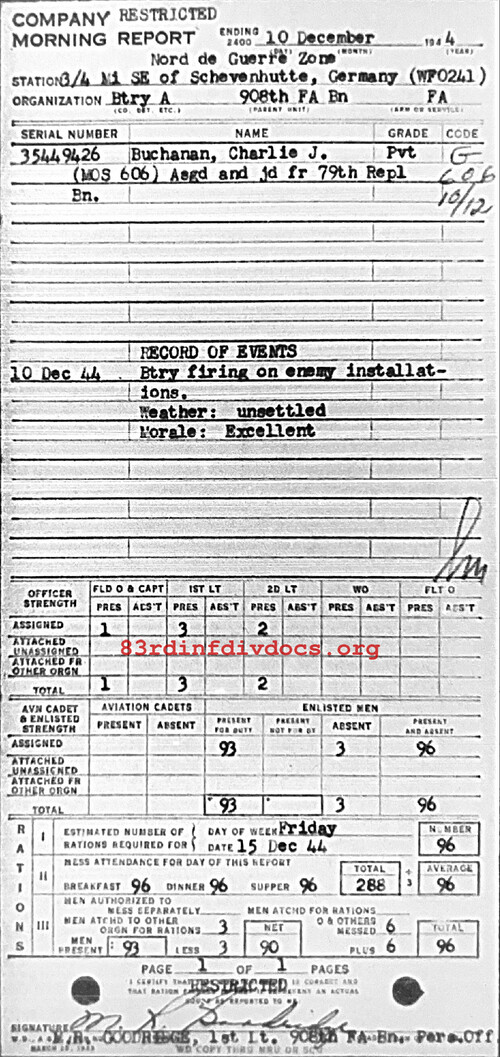 Morning report A/908FA for December 10, 1944