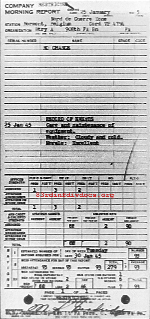 Morning report A/908FA for January 25, 1945