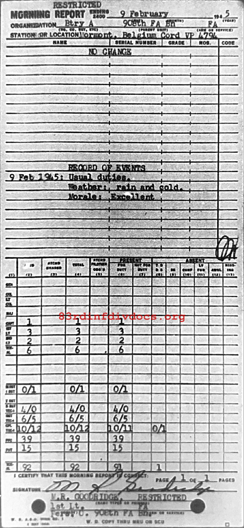 Usual duties. Weather: Rain and cold. Morale: Excellent.