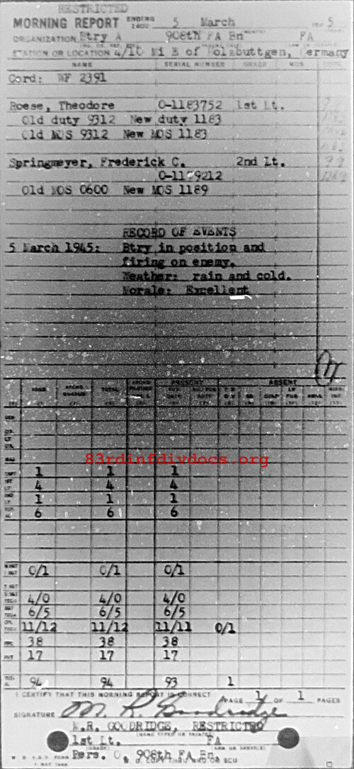 Morning report A/908FA for March 5, 1945
