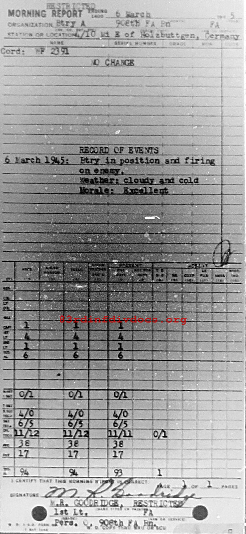 Morning report A/908FA for March 6, 1945