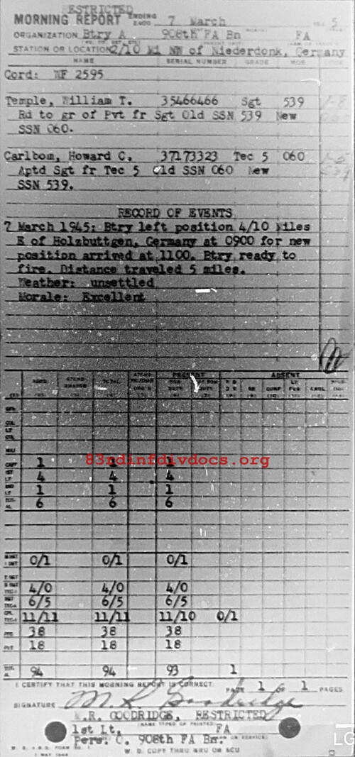 Morning report A/908FA for March 7, 1945