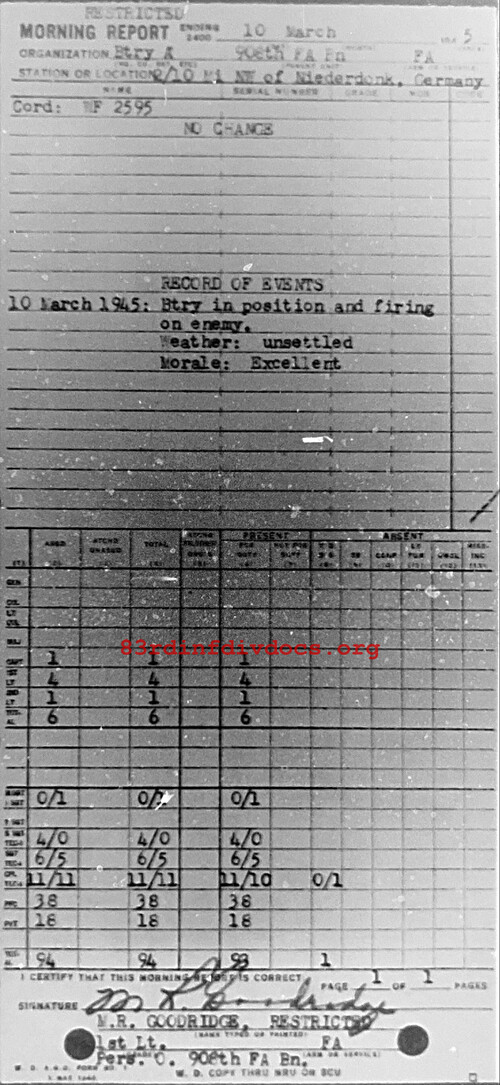 Btry in position and firing on enemy. Weather: Unsettled. Morale: Excellent.