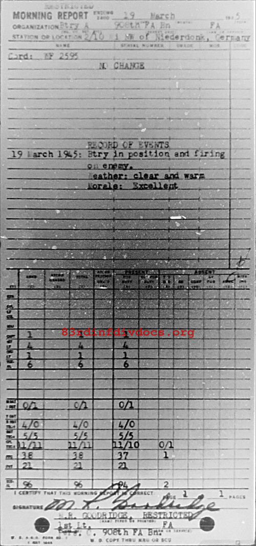 Morning report A/908FA for March 19, 1945