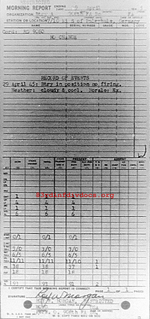Morning report A/908FA for April 29, 1945