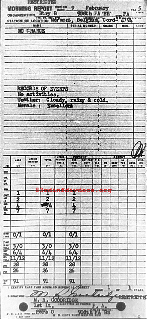 No activities. Weather: Cloudy, rainy & cold. Morale: Excellent.