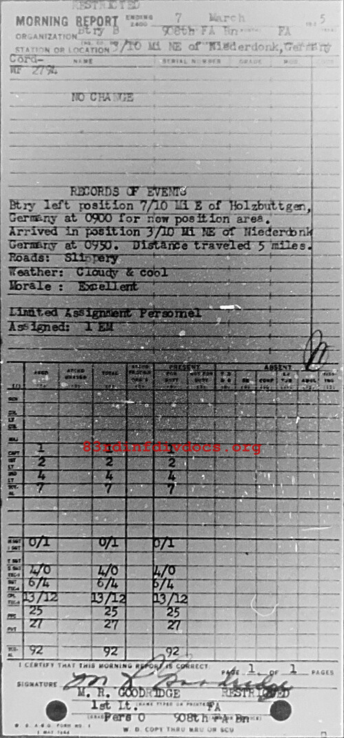 Morning report B/908FA for March 7, 1945