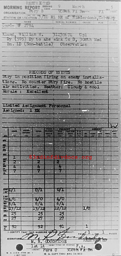 Morning report B/908FA for March 9, 1945