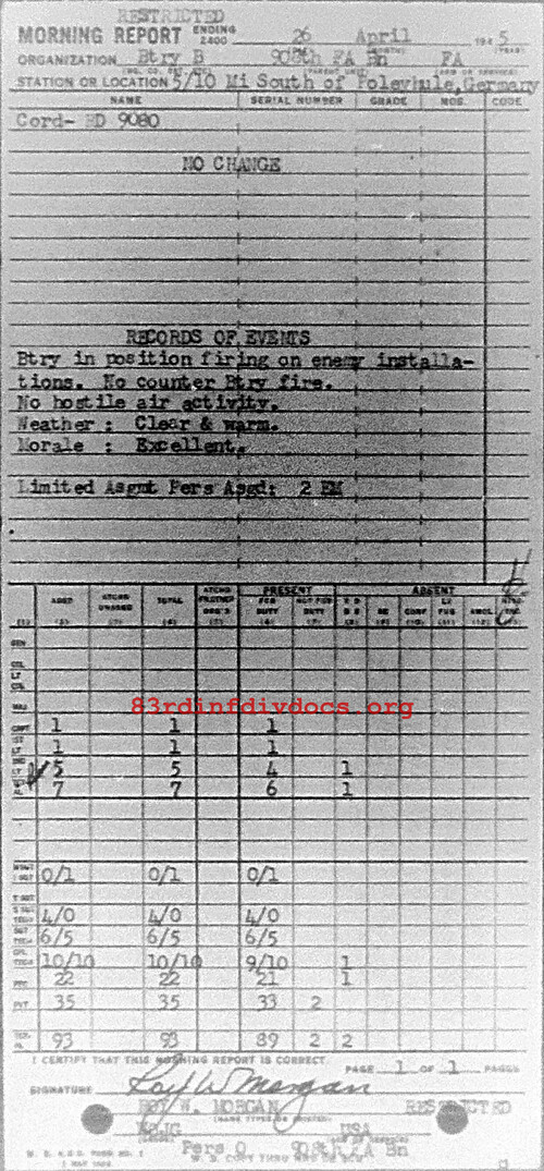Morning report B/908FA for April 26, 1945
